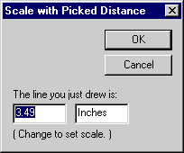 In this example you would change the "3.49" to 90 and change "Inches" to "Feet" and then press "OK." If during this process you misplace one of the two points ( including accidentally clicking ), you must hit cancel and start again.
