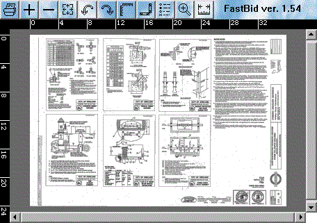 The measuring tool provides a few basic functions designed to allow accurate takeoffs on-screen. Using it is similar to using a digitizer pad, except it doesn't have all the options and functions. And just like all takeoff systems that work from paper, it is only as accurate as the originals. Since you are using images of paper ( not CAD drawings ), always double check, just as you would when using paper.